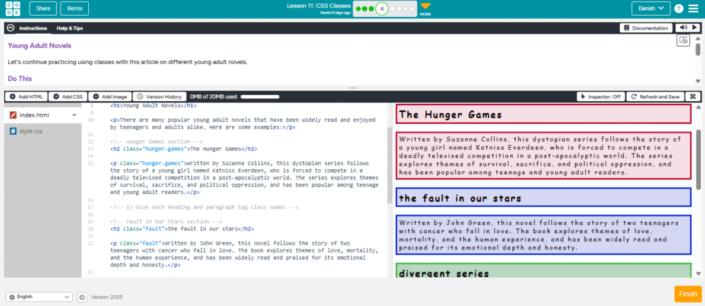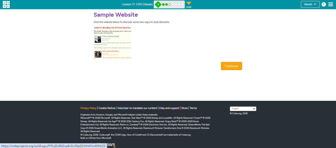assalamu’alaikum teman2 hari ini aku ingin membuat postingan tentang CSS classes. Jadi,ada sebuah web untuk belajar codingan bernama code.org. Aku sudah sampai level 11 yaitu CSS classes,pertama-tama apasih CSS itu? CSS adalah singkatan dari cascading style sheets, digunakan oleh para developer untuk mengatur tampilan sebuah web, soal ini sudah aku buat postingan lain yang menjelaskan tentang javascript, css, dan html. CSS classes seperti namanya adalah untuk mengelompokkan bagian yang mau kita atur tampilannya ada 3 level yang ingin aku jelaskan,ayo mulai dari level 1.